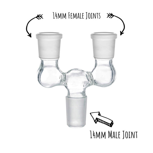 Double Bowl Joint Adapter - 14mm Male to Dual 14mm Female