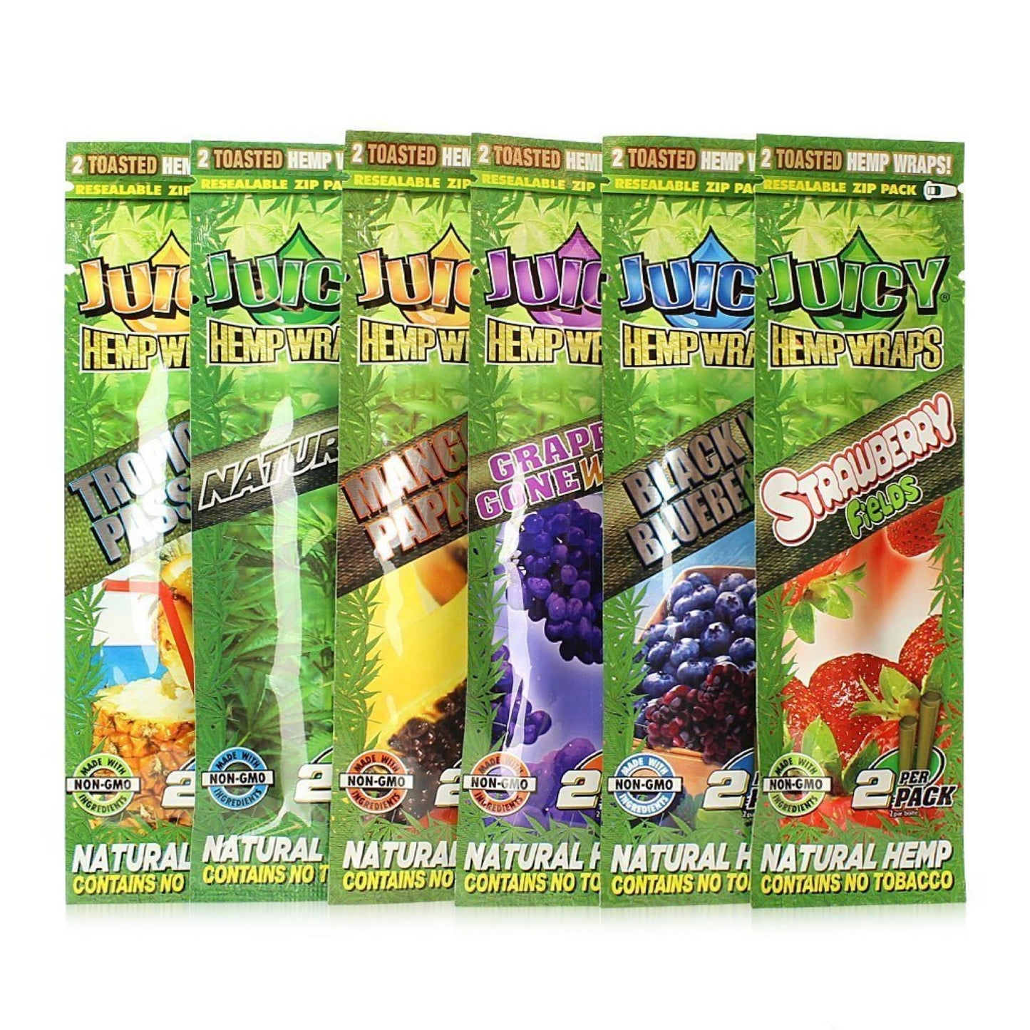 Juicy Natural Hemp Blunt Wraps are without a doubt the world's most flavorful blunt wrap! These Flavored Wraps from Juicy Jay’s contain no tobacco whatsoever and are made with vegan-friendly, non-GMO ingredients. Each pack contains two Juicy Hemp Wraps in a resealable zip pack for freshness. Choose between six mouthwatering flavors and start enjoying an all-natural and highly satisfying smoking experience with Juicy Flavored Blunt Wraps today!