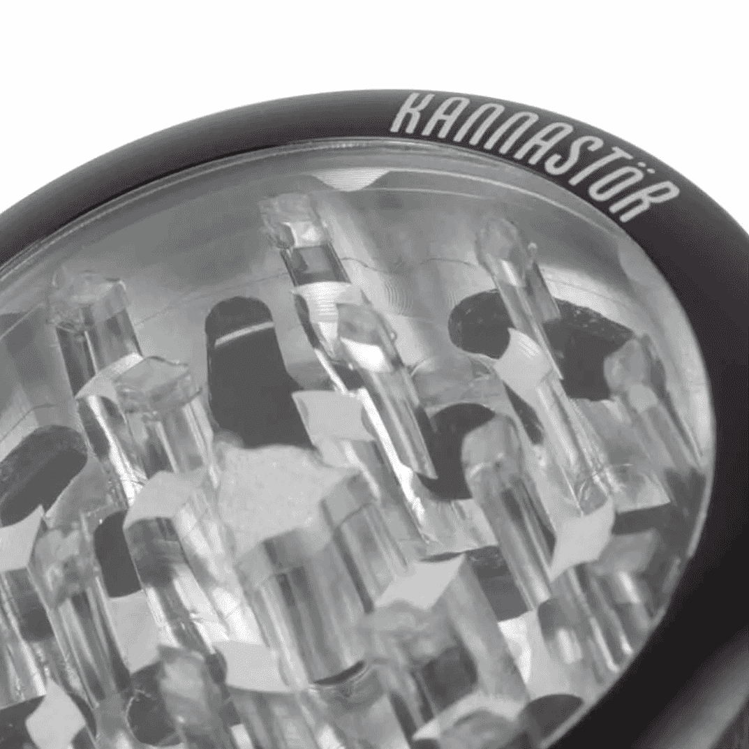The Kannastor 2.5” Clear Top Jar Body 4-Piece Grinder is finished with a textured grip for easy twisting. Extra strong magnets secure the grinding plates together when on the move and each kief compartment includes a Kannastor guitar pick scraper tool for easy scooping of your pollen collection when it’s time to dig in. Just like other Kannastor 4-part grinders, this Clear Top Jar Body Grinder is modular by design and can break down into a slimmer, more travel-friendly 3-piece configuration by removing the sifting chamber at the base. With a remarkable, second to none design made from extremely durable anodized aluminum metal, this Kannastor Grinder is a true investment that will last for years to come.