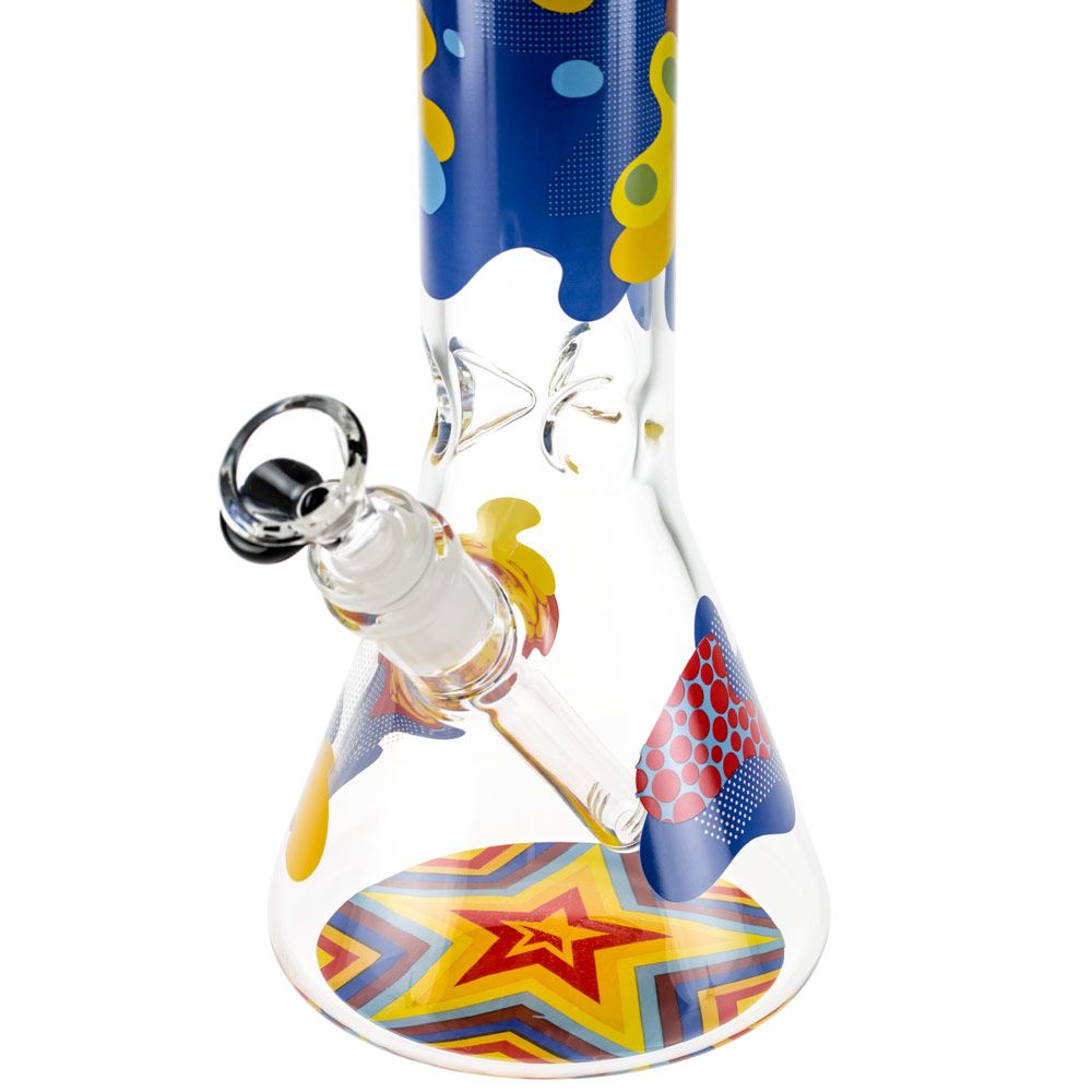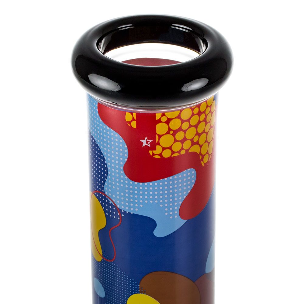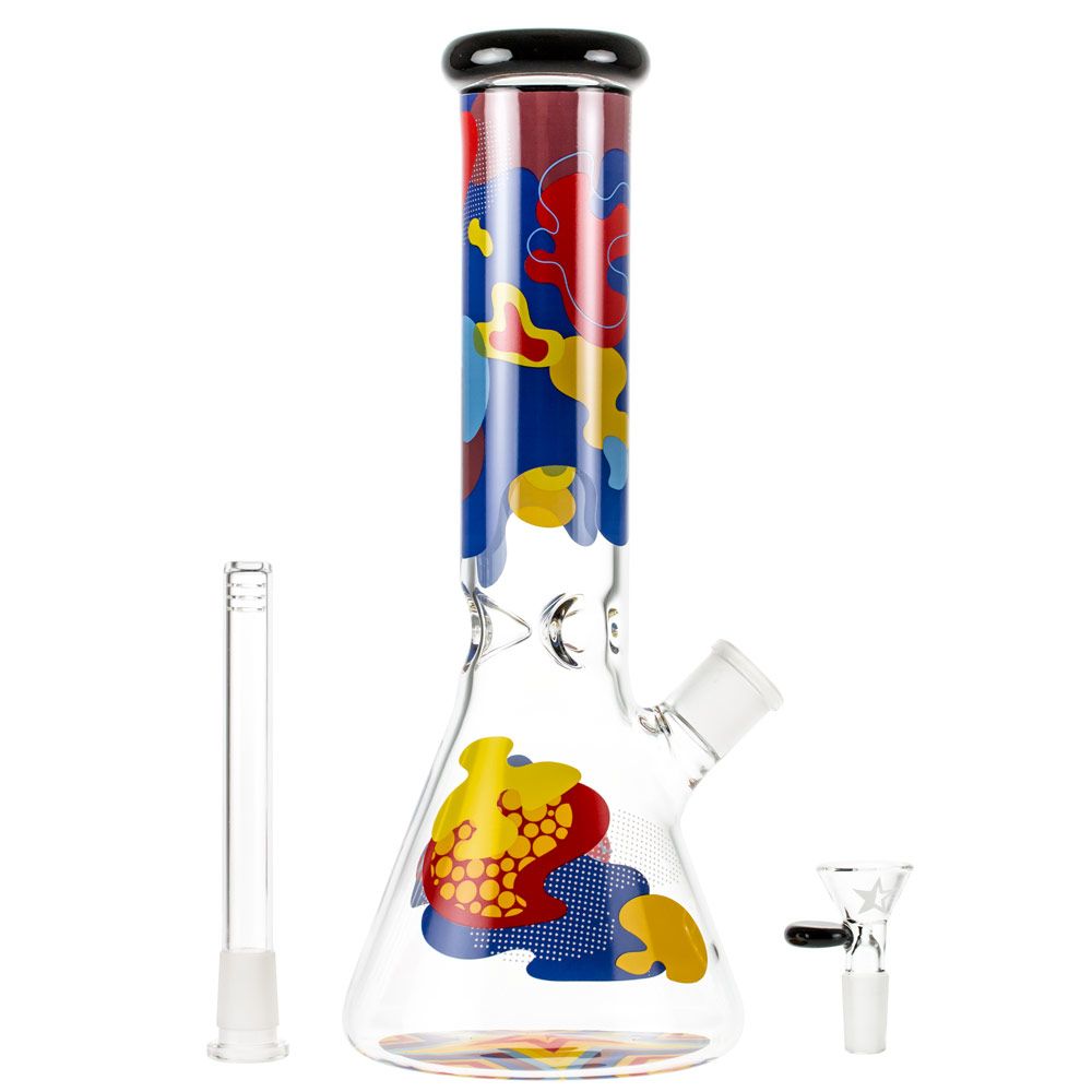 Just like the succulent and colorful fruit it’s named after, the Papaya Beaker Bong from Famous Brandz will be a sweet addition to any smoker’s glass collection. The Famous Designs Papaya Bong features bright eye-popping colors and psychedelic artwork on the neck and base that will make your head turn. The beaker bottom houses a 6-slit diffuser downstem that uses small openings at the end of the glass to effectively filter your smoke through water within the base. Within the straight neck, a triple-pinched ice catcher allows you to stack up ice cubes inside the tube for refreshing, frosty cold hits. A rounded mouthpiece made from matching thick black glass provides airtight draws and an ergonomic grip while passing around.